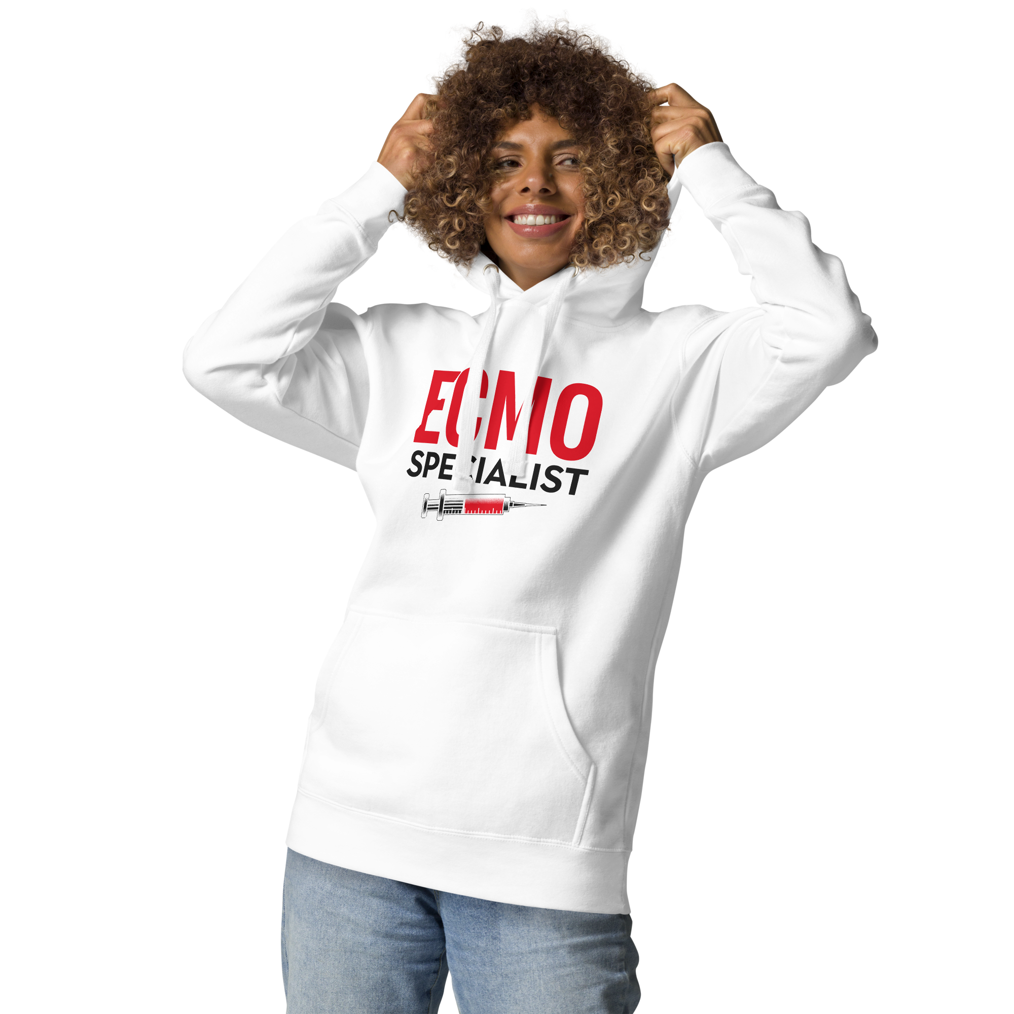 Stay comfortable and confident with our ECMO Specialist Hoodie. Made from premium mid-weight fleece, it features a roomy kangaroo pocket and adjustable hood to keep you warm on cool mornings and nights. The ECMO Specialist graphic is carefully centered at chest level, standing out against the garment’s rich color while representing your professional identity. Perfect for layering or standalone wear, this hoodie offers inclusive sizing and a unisex fit—so you can express your passion and dedication wherever you go.